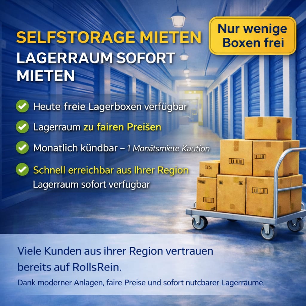 Ob kurzfristige Lagerung beim Umzug, Renovierung oder langfristiges Selfstorage für Ihr Unternehmen: Rollsrein bietet Ihnen individuelle Lagerlösungen in verschiedenen Größen – optimal erreichbar für Kunden aus Bischofsheim und Umgebung.